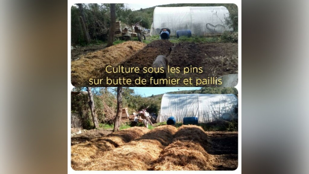 Aux Jardins De Tara, cette année l’hiver a des allures tantôt d’automne et tantôt de printemps… Méfi… comme on dit dans le Midi ! C’est le bon moment pour continuer à remettre en état les buttes des potagers, avec une couche de fumier de nos ânesses, de 10cm en entretien à 30cm au démarrage sur un sol compact ou peu fertile. Pour vous, celui de cheval sera plus facile à trouver en demandant au club hippique du coin. Ensuite recouvrir d’une bonne couche de paillis végétal de 10 à 15/20cm selon la sécheresse du climat… ici nous récupérons le foin pailleux gaspillé par les ânesses, mais tous les végétaux durs et secs conviennent, paille souillée, broyat, feuilles sèches… #jardinnaturel, #autonomie, #formation