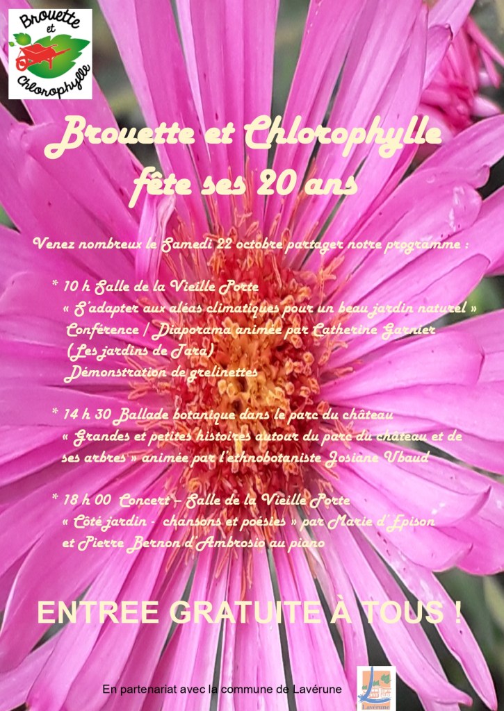 Samedi 22 octobre venez fêter les 20 ans de l’association BROUETTE et CHLOROPHYLLE à Lavérune (34)