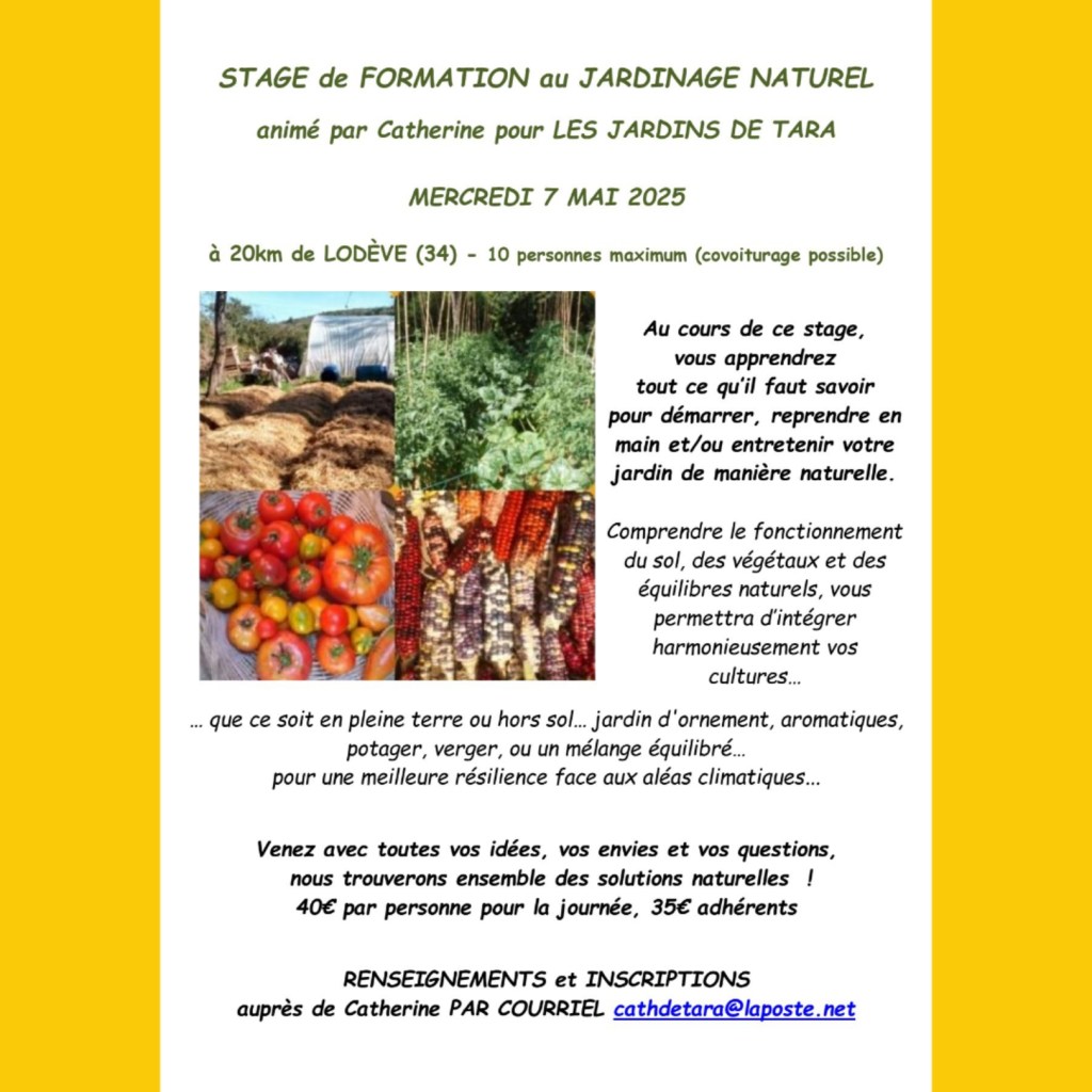 Mercredi 7 mai, stage de formation au Jardinage naturel dans les environs de Lodeve (34)